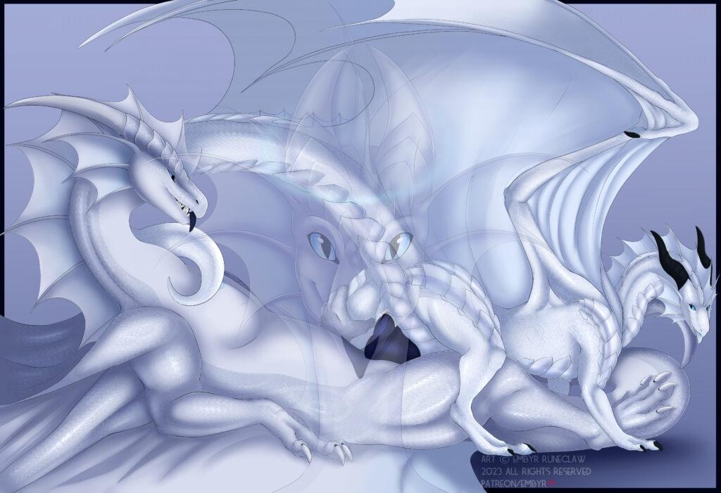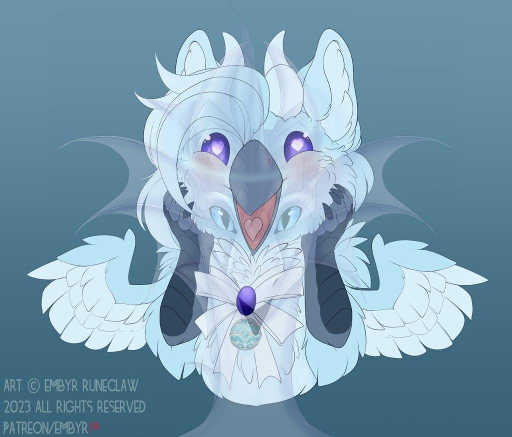 Now with all of that men­tioned lemme show you some of the art Embyr’s made recent­ly. Some love­ly ato­nom­i­cal ref­er­ences, Kamaria and Lunar Tsar get­ting clos­er, Nacht’s updat­ed Ref, Hap­py Birb Juni, Freya’s updat­ed ref and alter­nate coloura­tions, Bane’s new Ref, and some oth­er fun stuff. There is also now an alt of a piece we com­mis­sioned a few months ago that we just recent­ly got.
