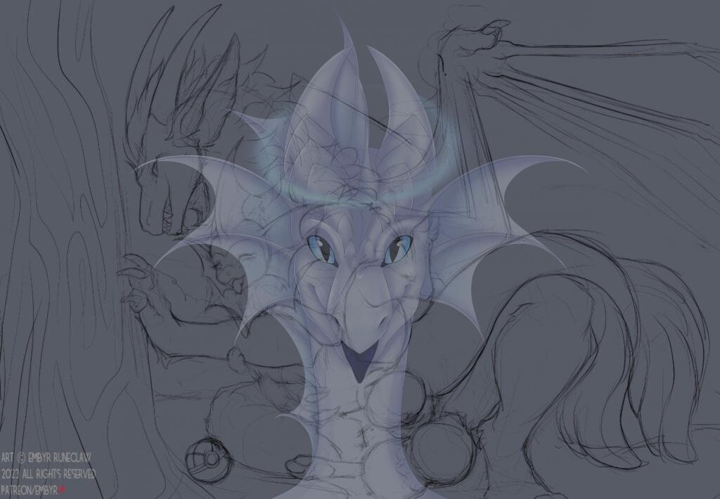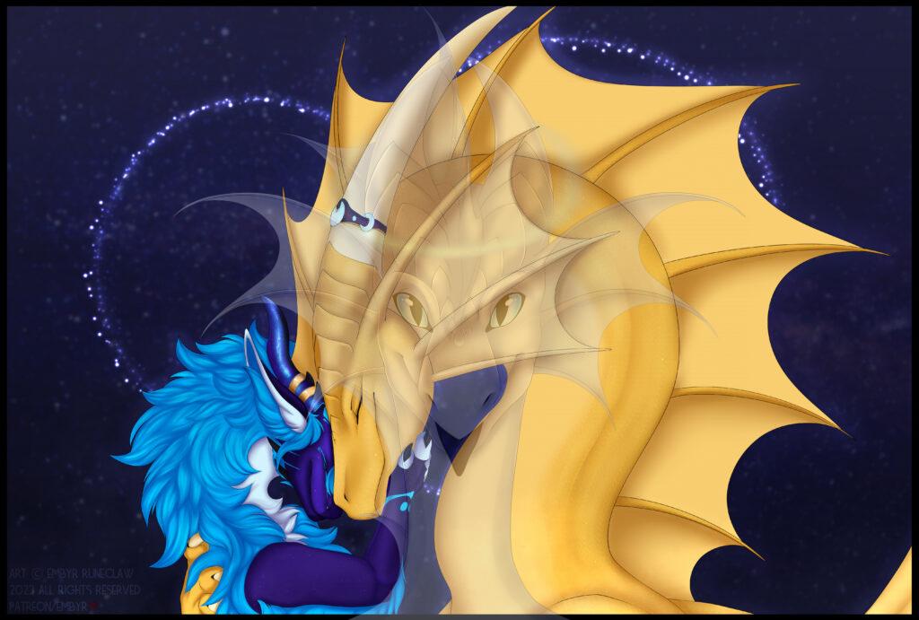 Having recreated Treori though Em has been amazing and created some new art of her and I absolutely love this head shot. Her mane starting at her head is absolutely perfect. Jeez she did such an amazing job. This is most definitely my favourite head shot of her. It would be my favourite of her except I’m kinda a pervert at time and I do like my derg lewds. She’s gorgeous! Em’s also given a lovely shot her other end too as well as one for Aetas and a lovely cuddle piece of Tsar and Embyr and a sketch of Tsar with a feesh (Vaporeon)